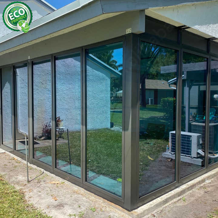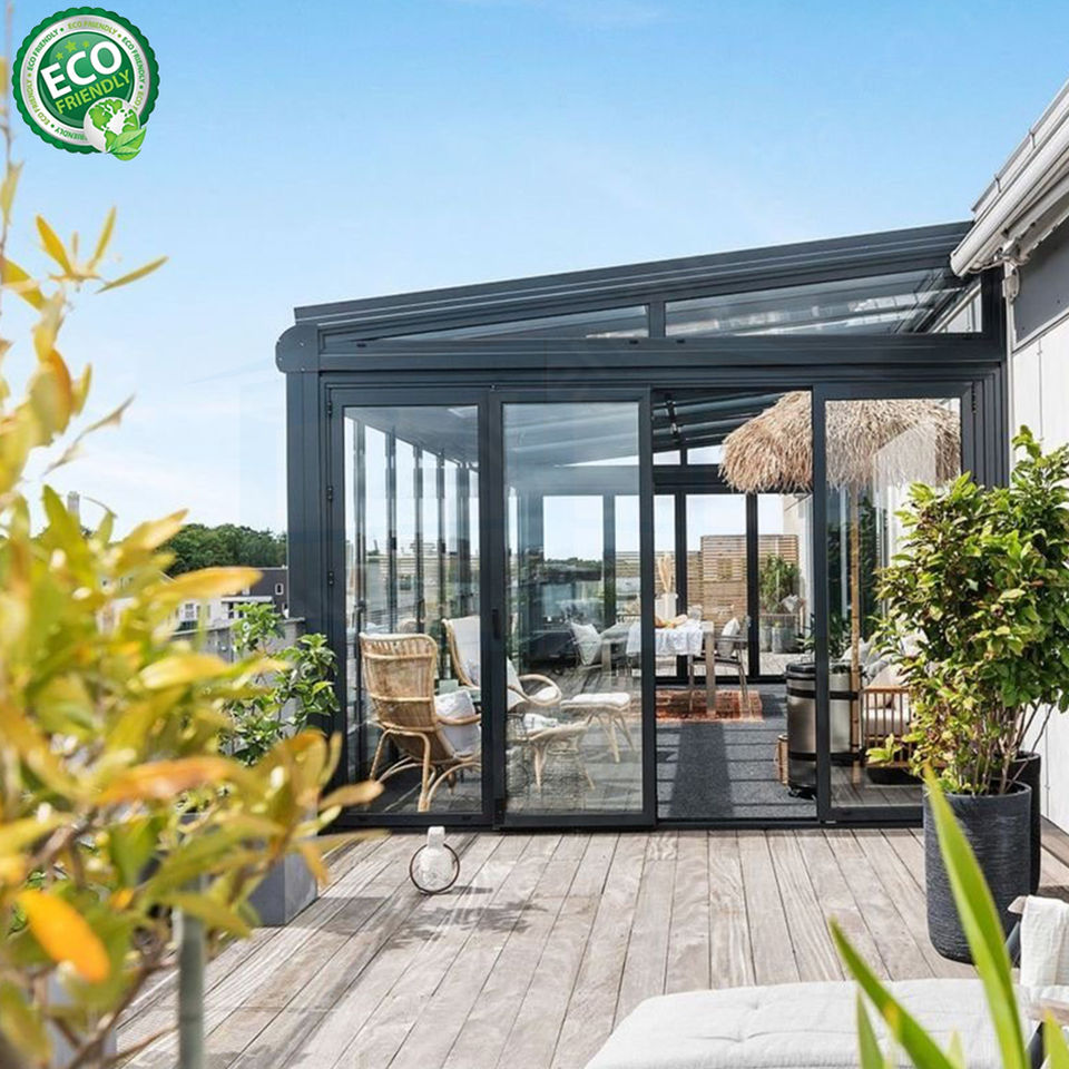 Modern Glass Houses Outdoor Garden Sunroom Lean to the Wall Motorized Glass Sliding Door Houses