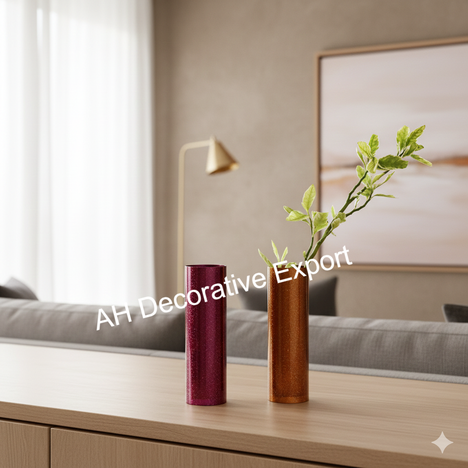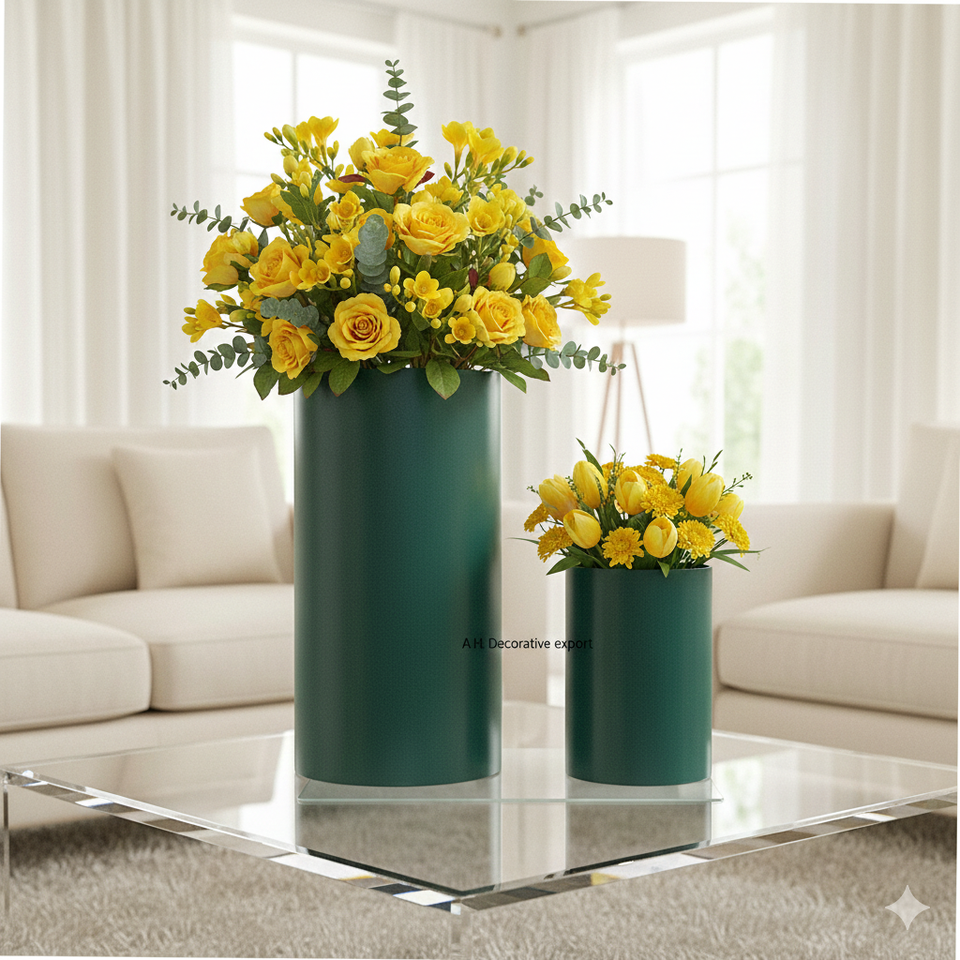 Modern Glitter Metal Cylinder Vase Set Matt Glaze Portable Custom Color Tall Tabletop Flower Vases Home & Wedding Decor