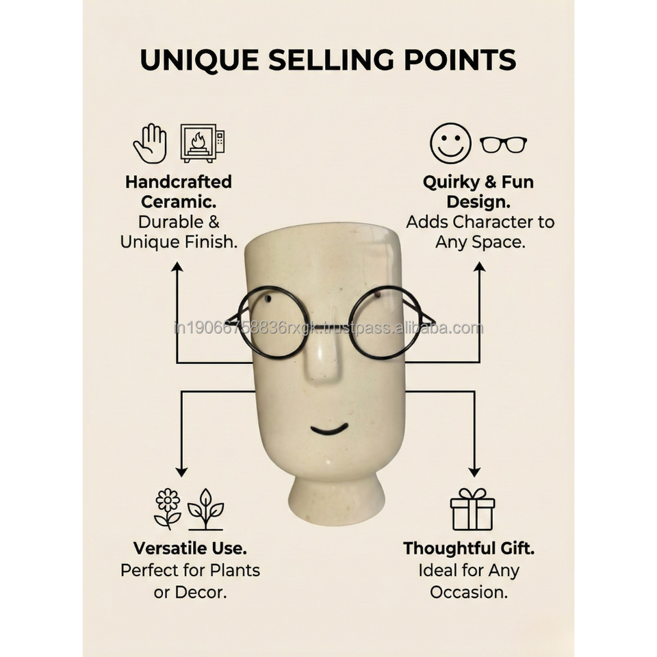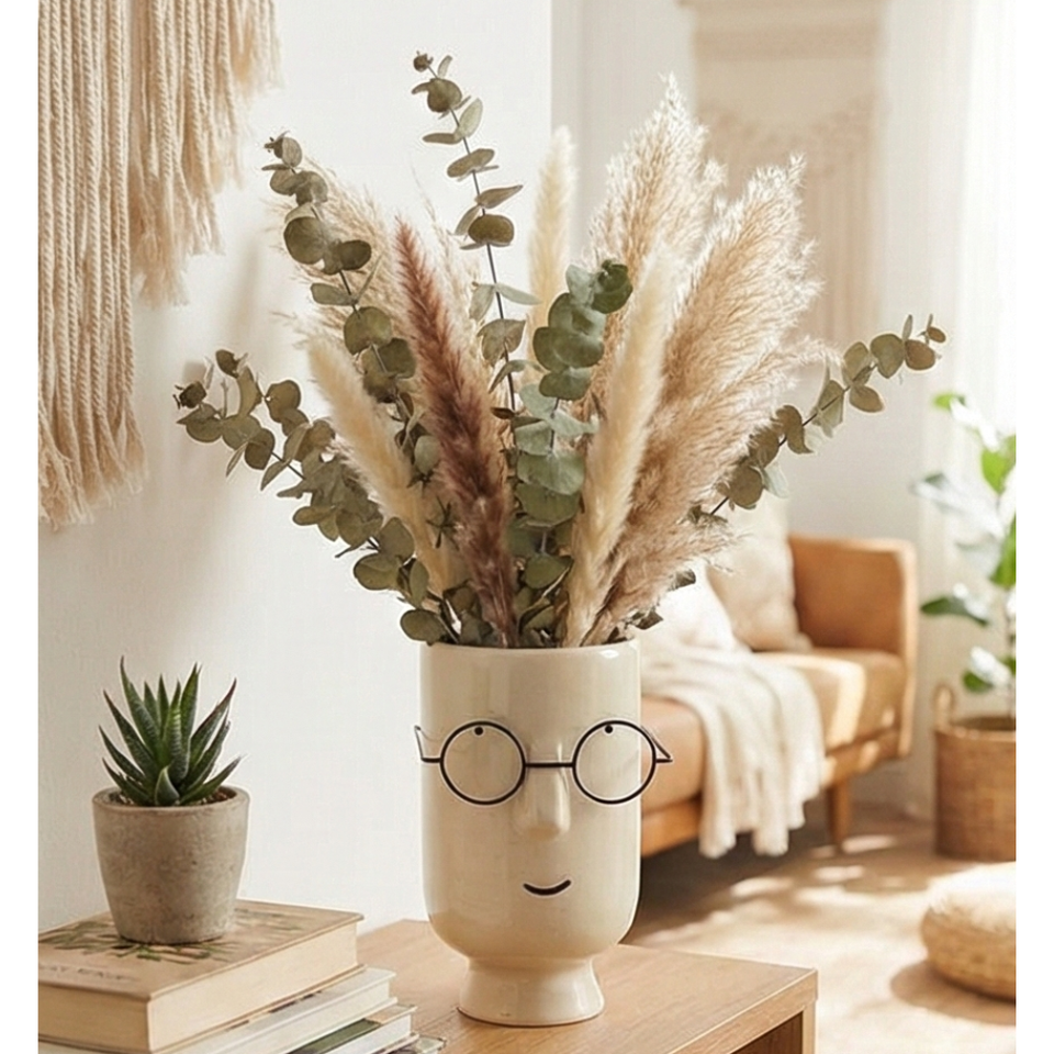 Modern Glossy Ceramic Portrait Face Vase Handmade India 20 cm Scratch Resistant Decorative Art Planter for Home Easter Wedding
