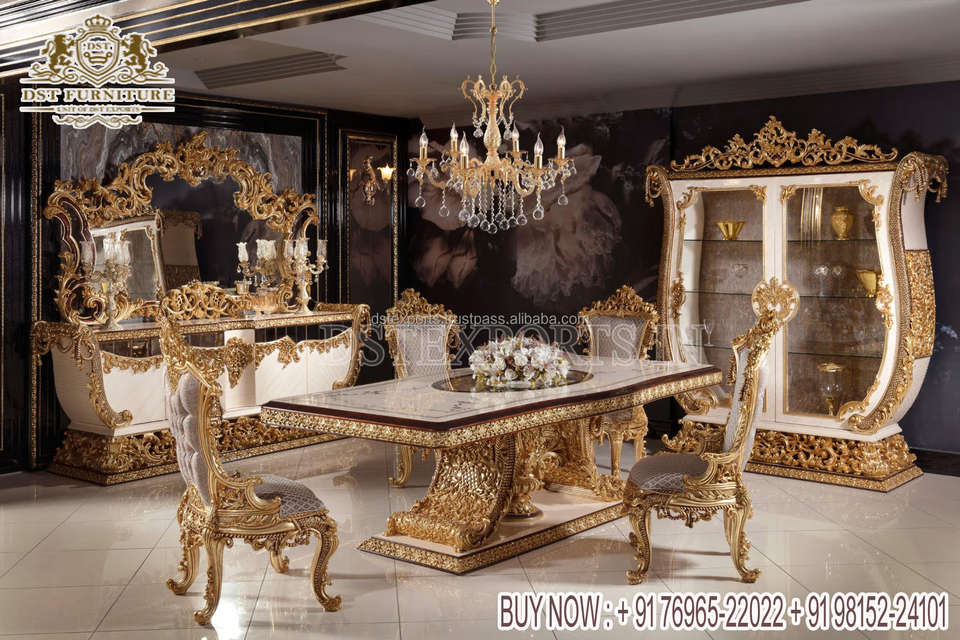 Baroque Style Gold Carving Dining Table & Chairs SetProduct name