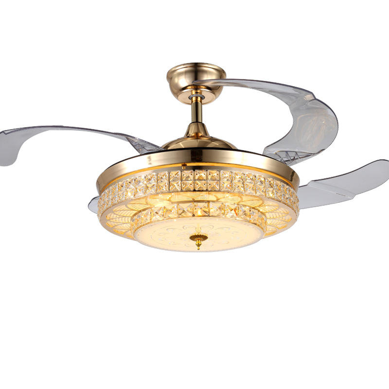 Modern Gold Chandelier Crystal Light for Bedroom Retractable Blades Ceiling Fan LED Dimming Indoor Home Lighting ABS Metal Lamp
