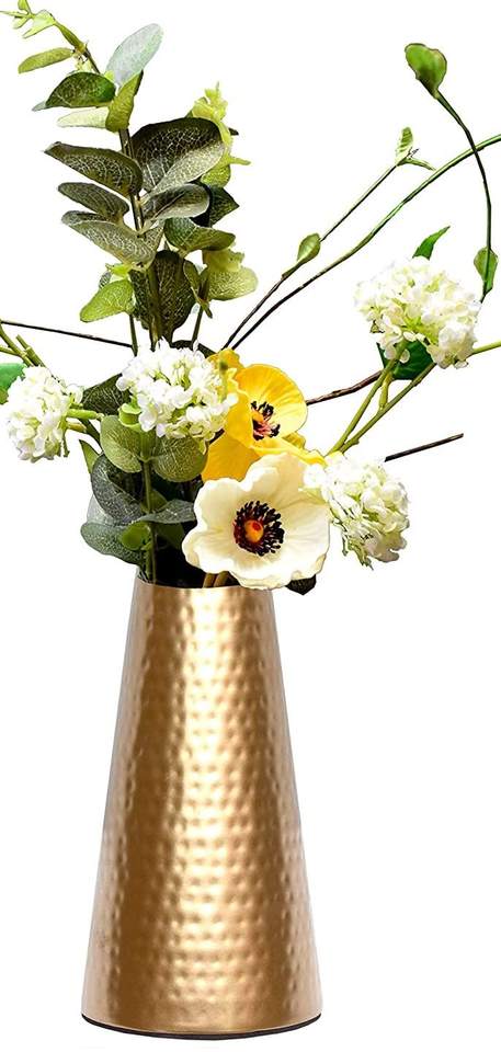 Handmade Modern Gold Flower Vase Antiqued Iron Metal Design Stylish Steel Tabletop Decoration for Weddings Home Vintage Look