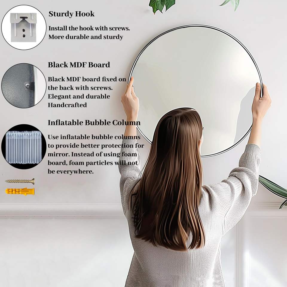 Modern Gold Frame Bathroom Mirror Waterproof with LED Lights 3 Color Options for Wall Vanity Lighting