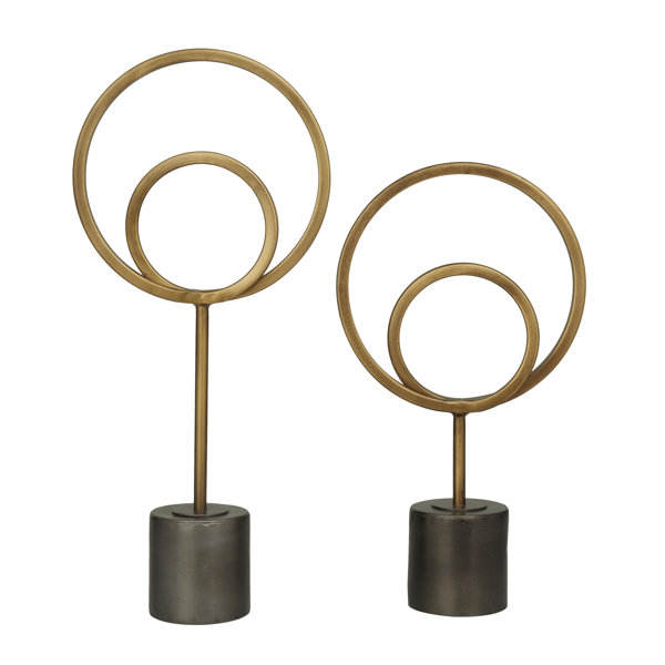 Modern Gold Geometric Metal Sculpture Set with Black Base for Home Office Living Room Decor