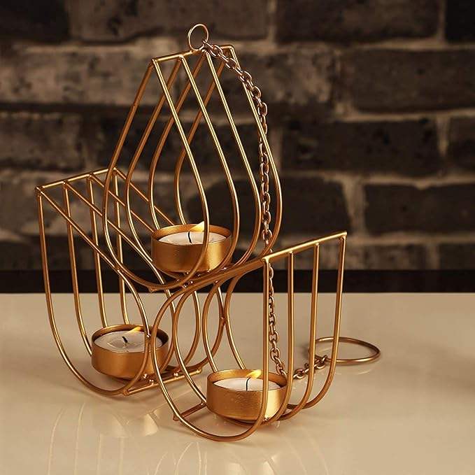 Modern Gold Iron Candle Stand Stylish Metal Pillar Holder for Living Room and Dining Table Decoration
