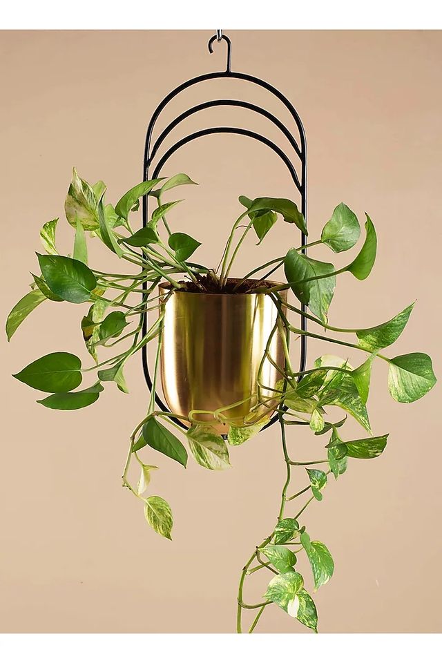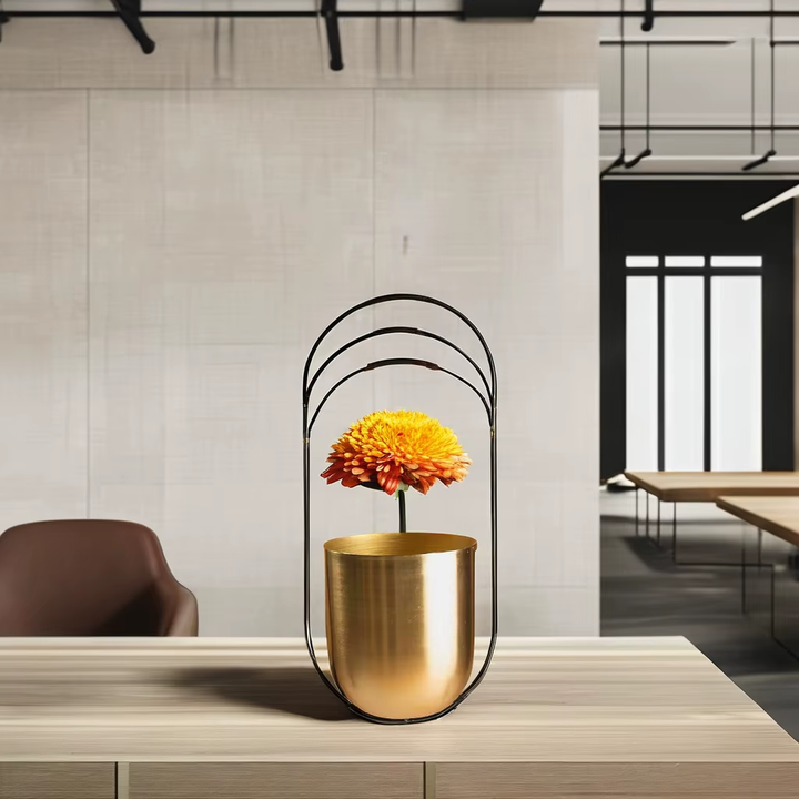 Modern Gold Iron Flower Pot with Black Stand Round Planter Hanging Home Decor Plant Holder Indian Metal HandMade Planter.