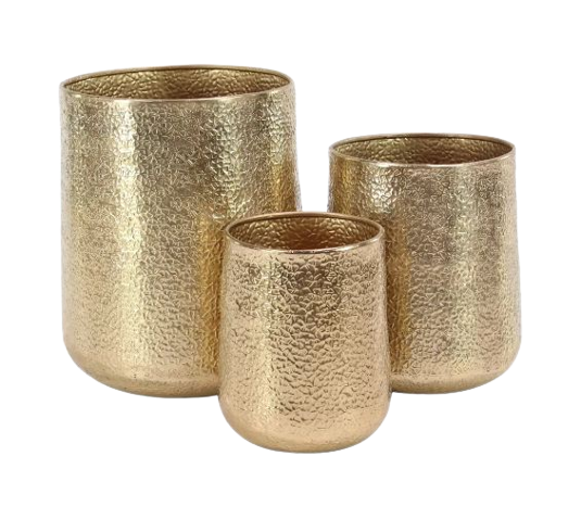 Modern Gold Medium Metal Hammered Floor Planter Round Planter Is a Stylish Companion Your Living Space With Small Plants