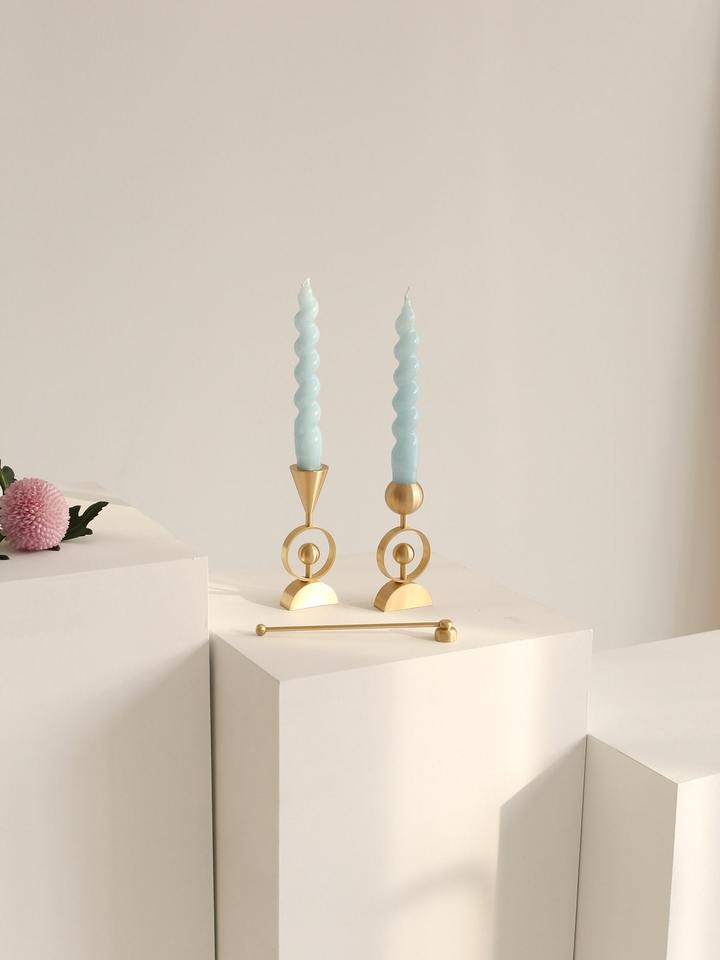 Modern Gold Metal Taper Candle Holder Nordic Geometric Sphere Candlestick Stand Luxury Brass Wedding Centerpiece Home Ornament