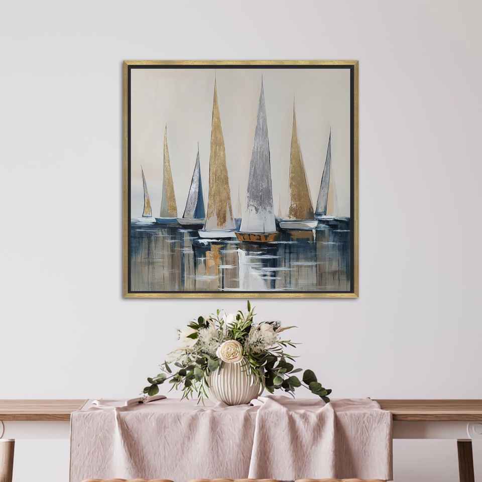 Modern Gold & Silver Sailboats: Printed Canvas Wall Art,GOLD FRAMED CANVAS