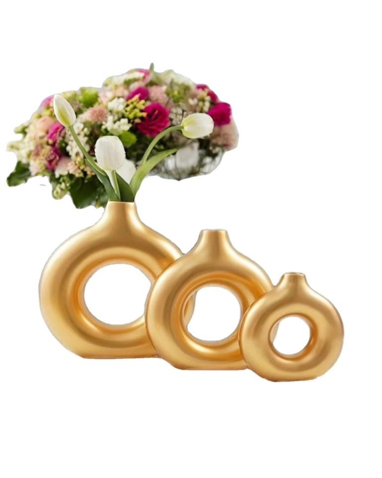 Modern Gold and White Abstract Ring Flower Vase Elegant Decorative Vase for Home Office Hotel Table Decor