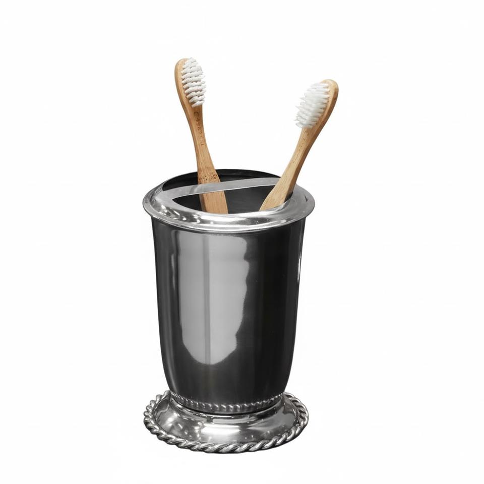 Modern Golden Bath Water Tumbler And Toothbrush Holder Metal Countertop Bathroom Accessory Organizer For Hotel Home Use