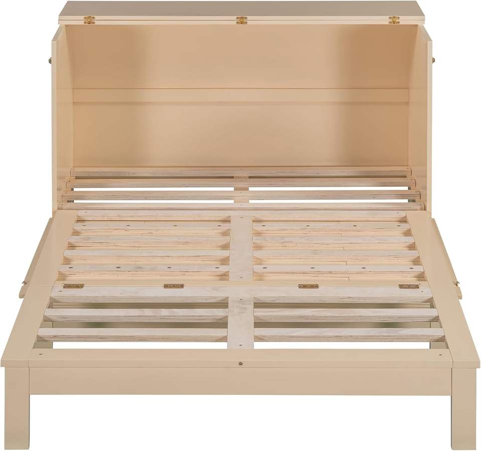 Modern Golden Design Full-Size Murphy Bed with Integrated USB Sockets Solid Wood Drawers Space-Saving Traditional Style Solution