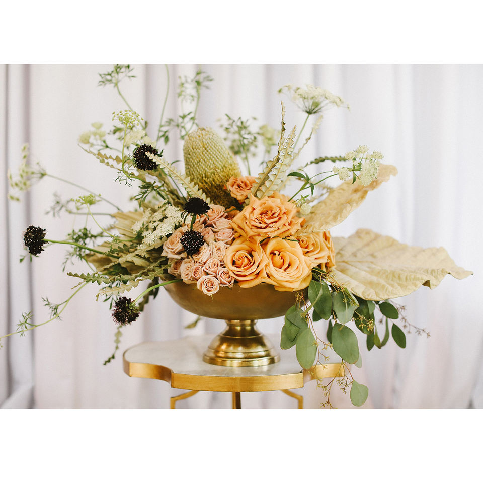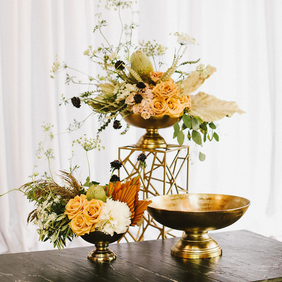 Modern Golden Metal Flower Pedestal Bowl Vase Handmade Wedding Centerpiece with Rough Finish High Standard Quality