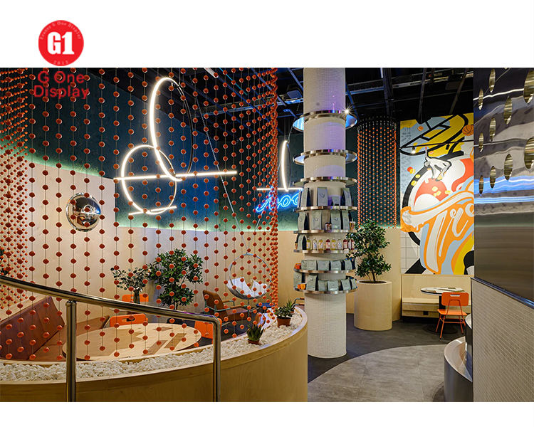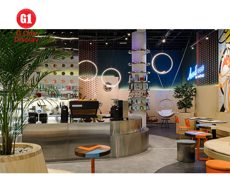 Modern Good Quality LED High End Coffee Shop Display Counter Design Custom Cafe Showcase Interior Layout Decoration
