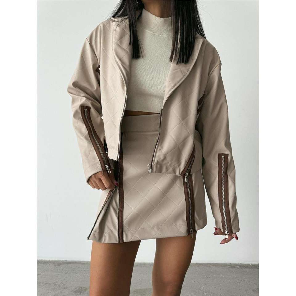 Modern Gothic Pencil Skirt with Zipper Detail Genuine Leather Short Length Embroidery and Ruffles Tight Fit Denim Fabric