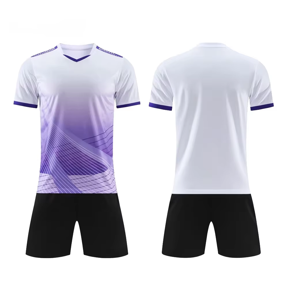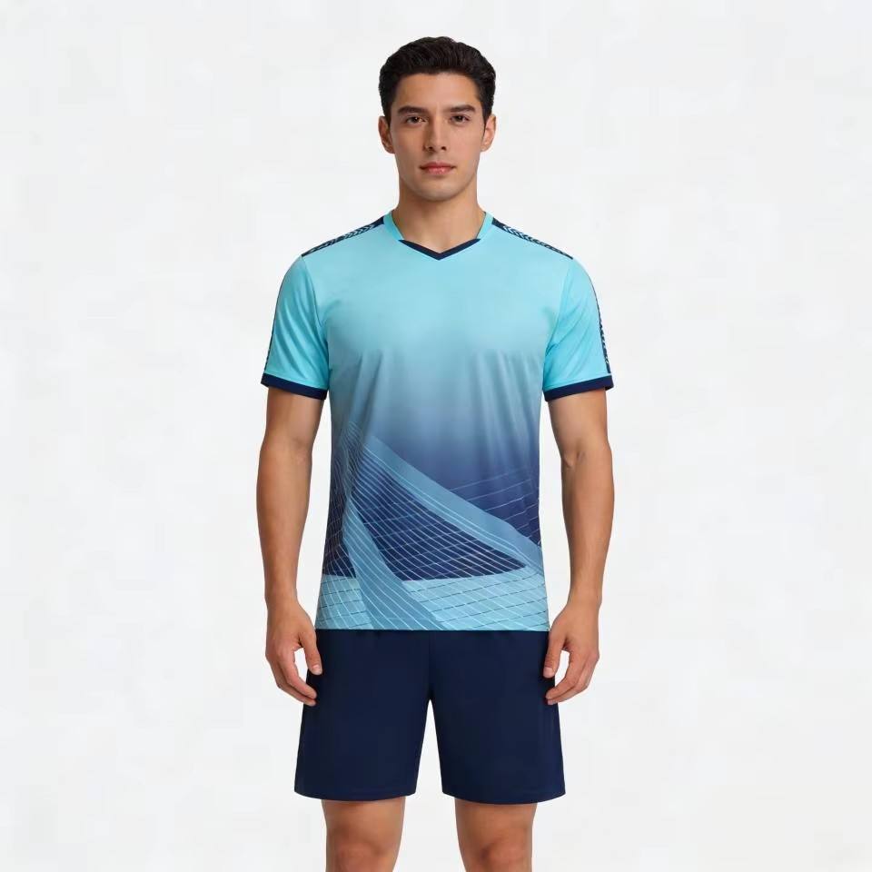 Modern Gradient Pattern Quality Quick Dry Breathable Polyester Unisex Customizable Soccer Kit For Team Training And Competition