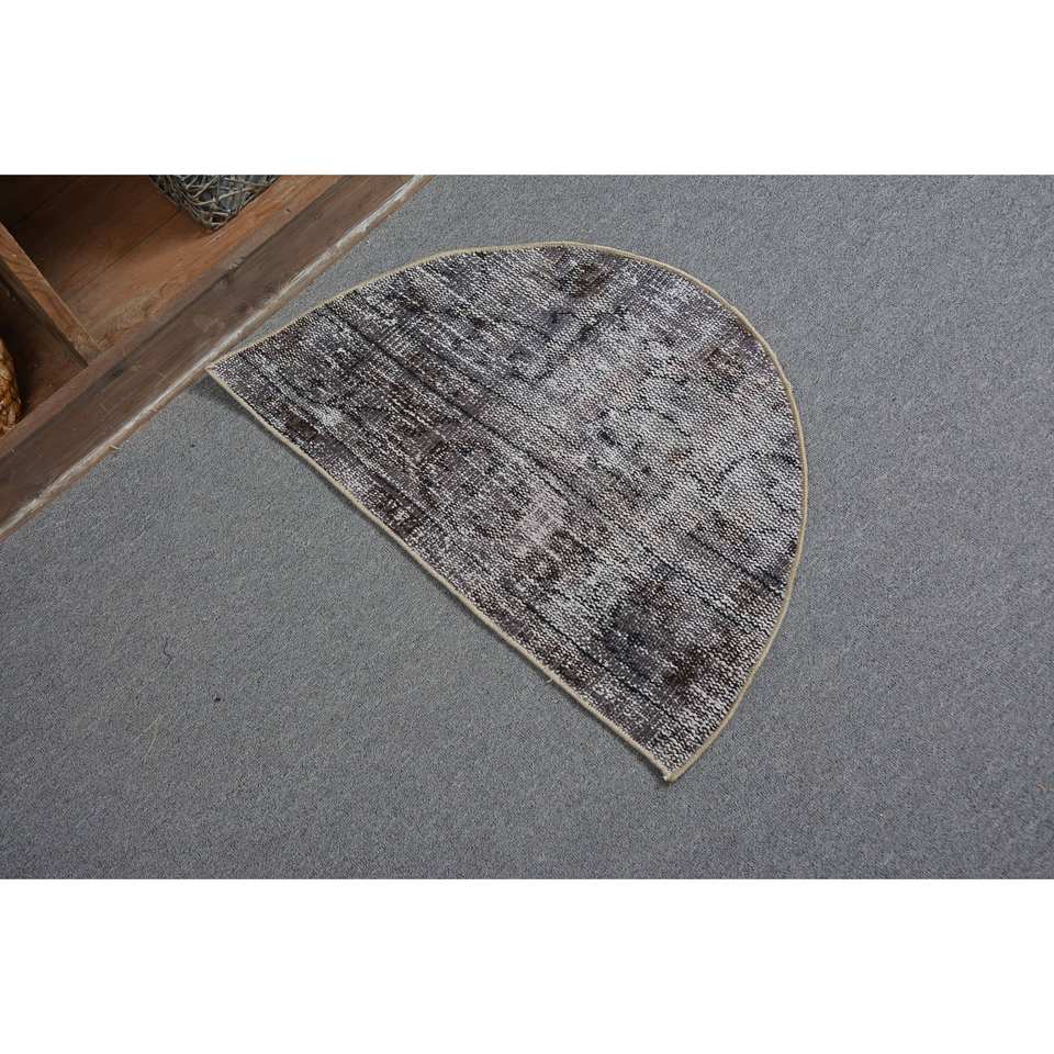 Modern Gray Vintage Turkish Rug 2.5 X 1.5 ft Handmade Wool Patchwork Design for Entryway Large Rectangle Shape 10mm Latex