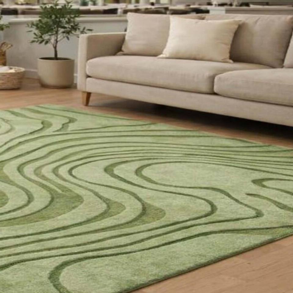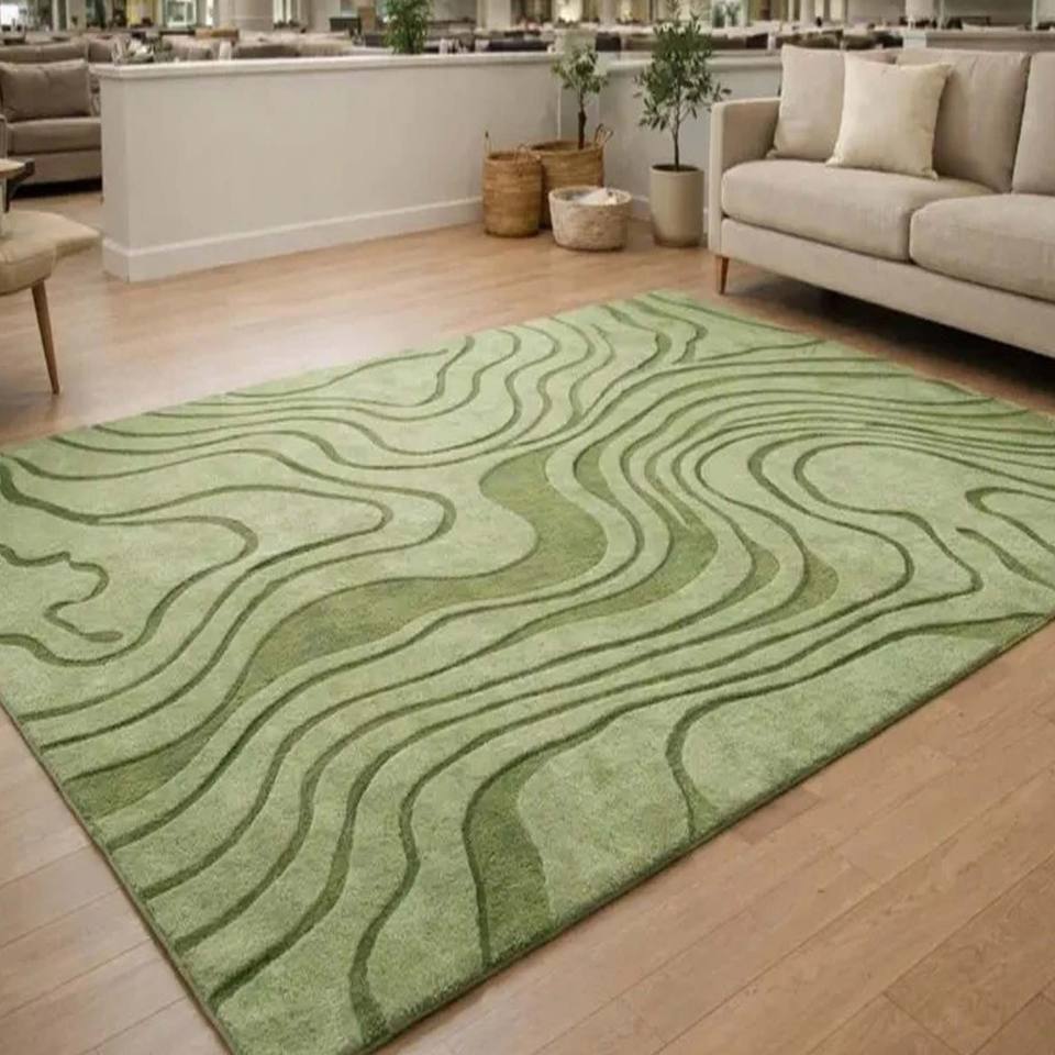 Modern Green Abstract Area Rug Wave Pattern Hand Tufted Carpet Large Living Room Bedroom Soft Decorative Floor Home Decor Rug