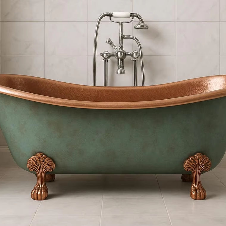 Modern Green Copper Clawfoot Soaking Tub with Patina Finish Luxury Outdoor Bathtub for Bathing Experience