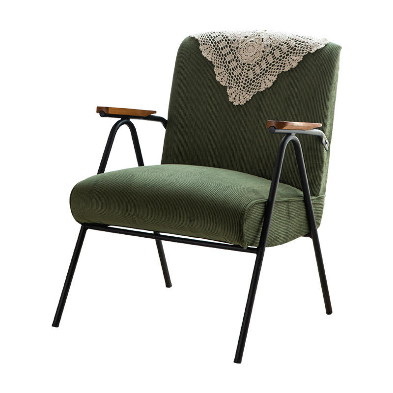 Modern Green Fabric Living Room Chair With Wooden Arms And Metal Frame For Small Apartment Or Balcony Use