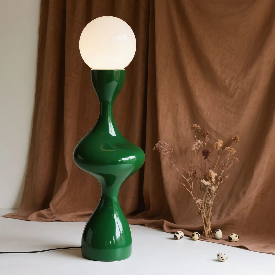 Modern Green Wavy Floor Lamp with Globe Shade | Artistic Standing Light for Living Room and Home Interior Decor
