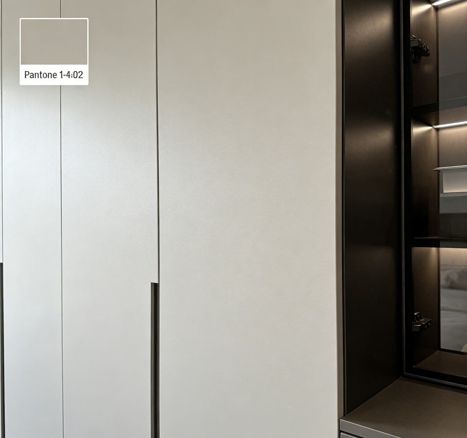 Modern Grey Built-in Wardrobe - Integrated Desk & LED Lights, Minimalist Bedroom Storage for Home Office