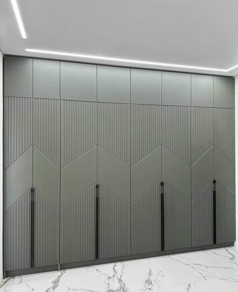 Modern Grey Sliding Door Wardrobe With Shelves And Drawers Stylish Wooden Bedroom Storage Cabinet For Home Interior