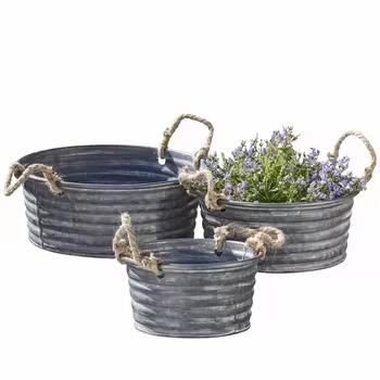 Modern Grey Zinc Galvanized Garden Planter Metal Pot Planter with Stand for Home Indoor Outdoor Decor Usage