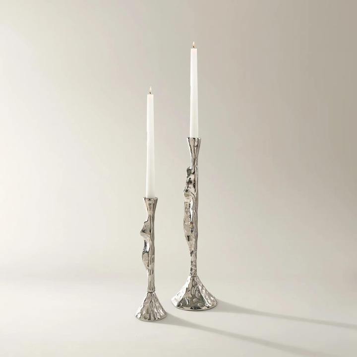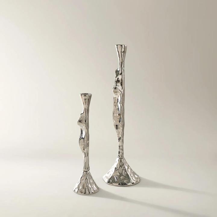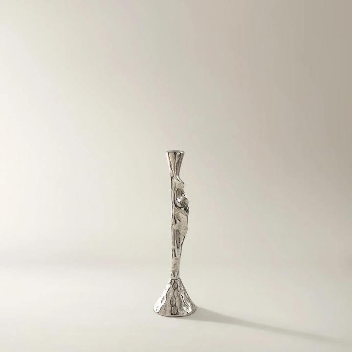 Modern Hammered Metal Taper Candle Holder Abstract Organic Shape Textured Candlestick Luxury Wedding Table Centerpiece Decor
