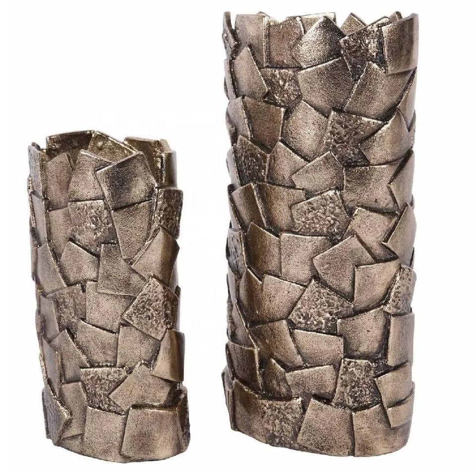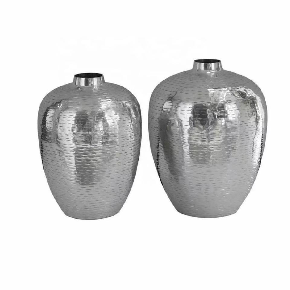 Modern Hammered Silver Metal Vase Set of Two Stylish Tabletop Decor Flower Vases Perfect for Home or Office at Wholesale Price