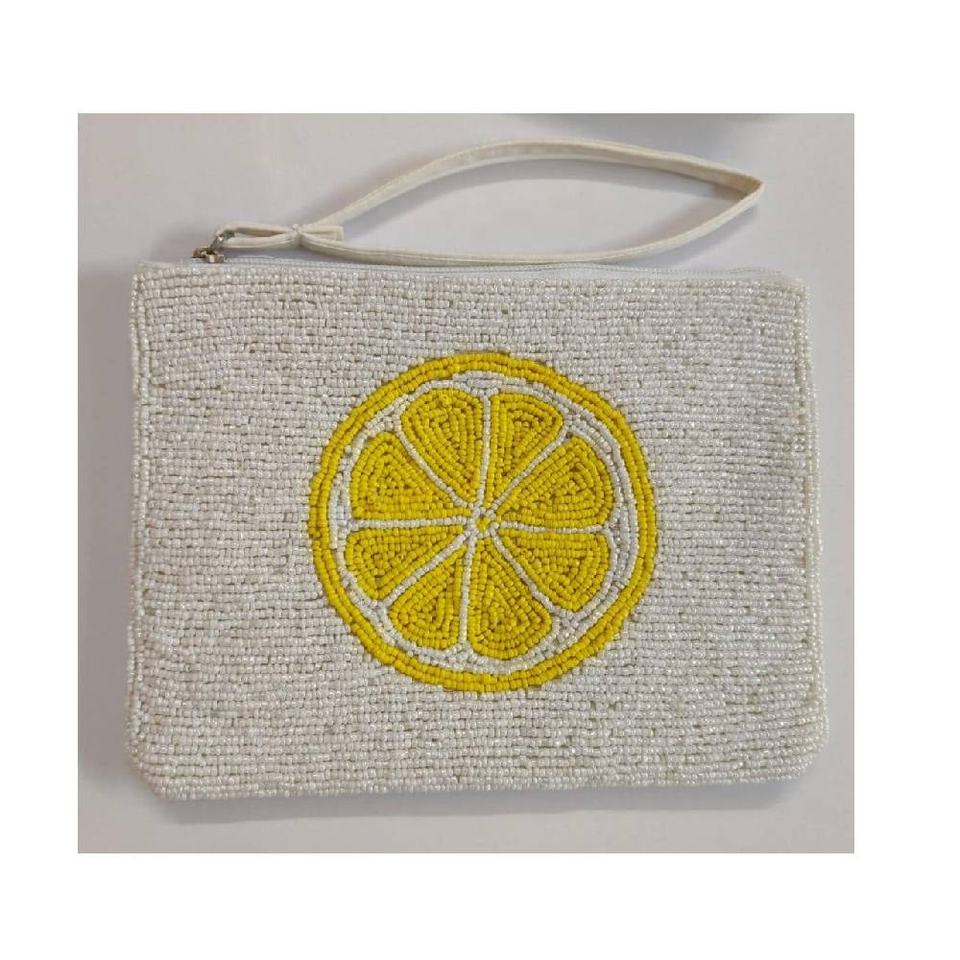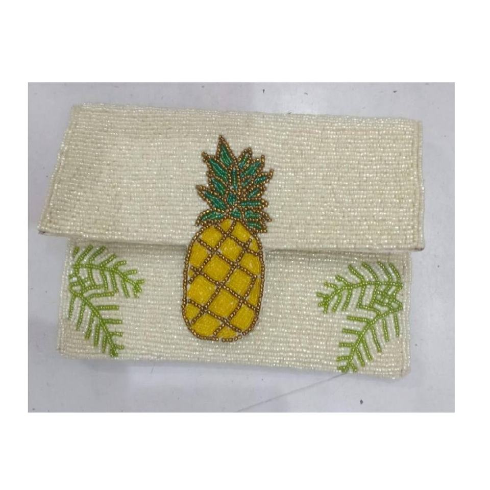Modern Hand Beaded Mini Coin Purse with Zipper Closure Fruit Pattern Hold Key Cash Card Multipurpose Use Women Accessory