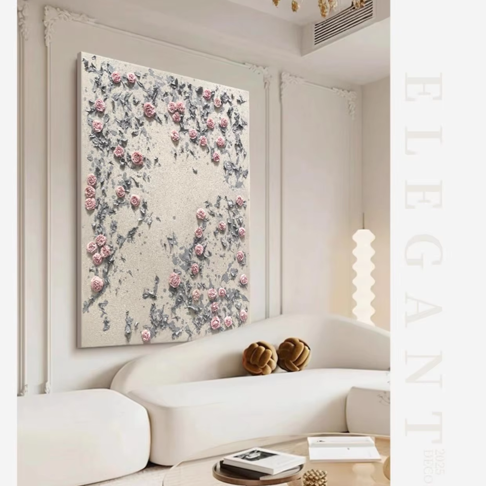 Modern Hand Painted Eco-Friendly Oil Canvas Painting with Three-dimensional Roses for Living Room Wall Hanging Decoration