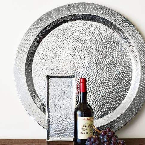 Modern Handicraft Stainless Steel Gold Trays And Bowls With Floral Patterns Hammer Serving Trays For Tables And Bars And Party