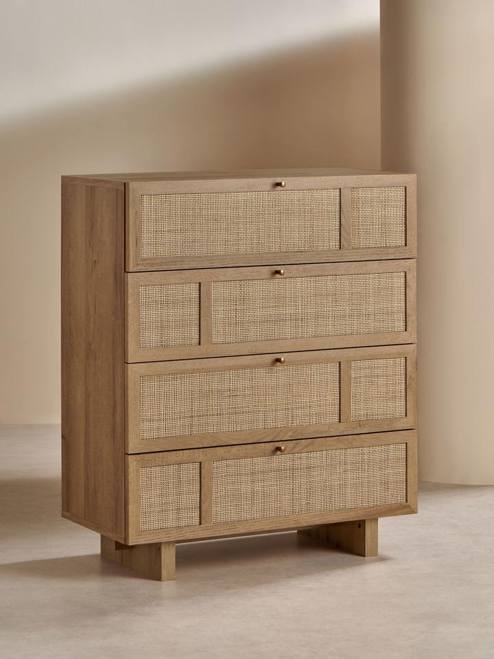 Modern Handmade 4 Drawer Mango Wood + Canning Rattan Chest of Drawers dresser in Natural Bedroom Storage Collection