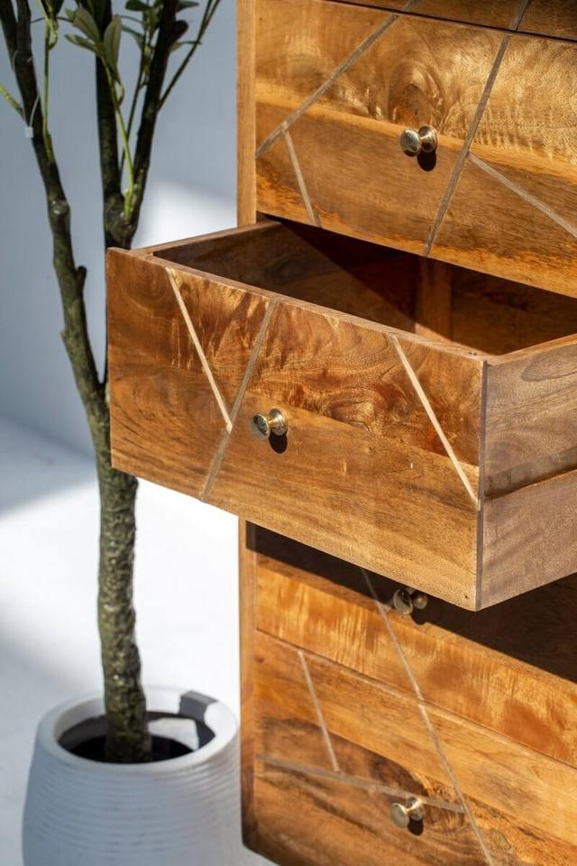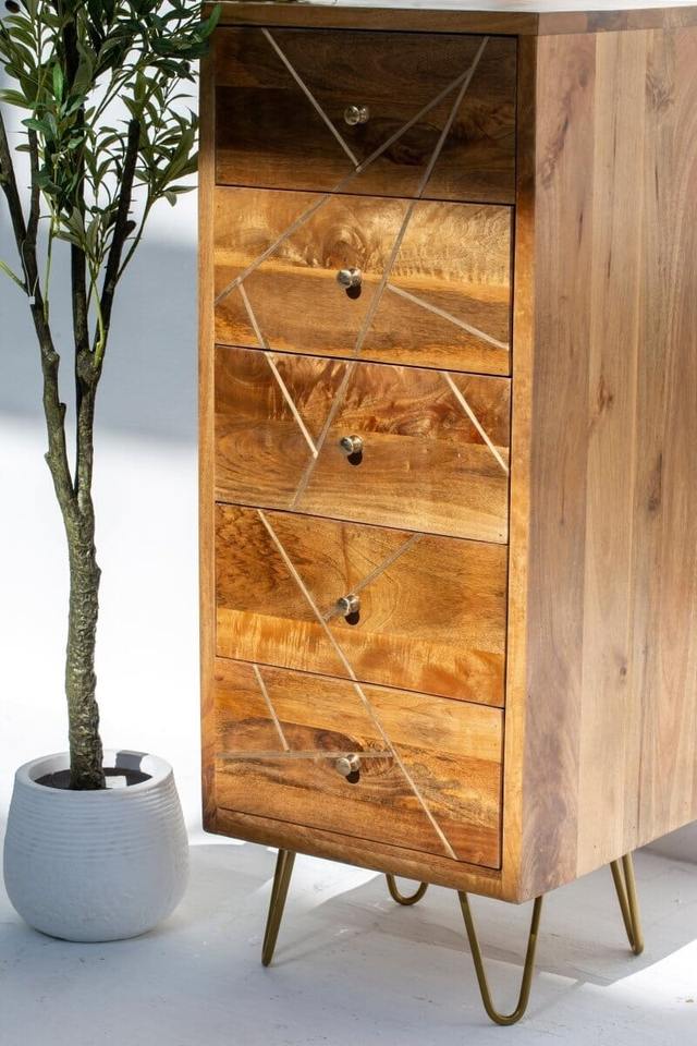 Modern Handmade 5-Drawer Solid Mango Wood Chest with Metal Legs Premium Storage Cabinet for Home Use Living Room Bedroom Dining