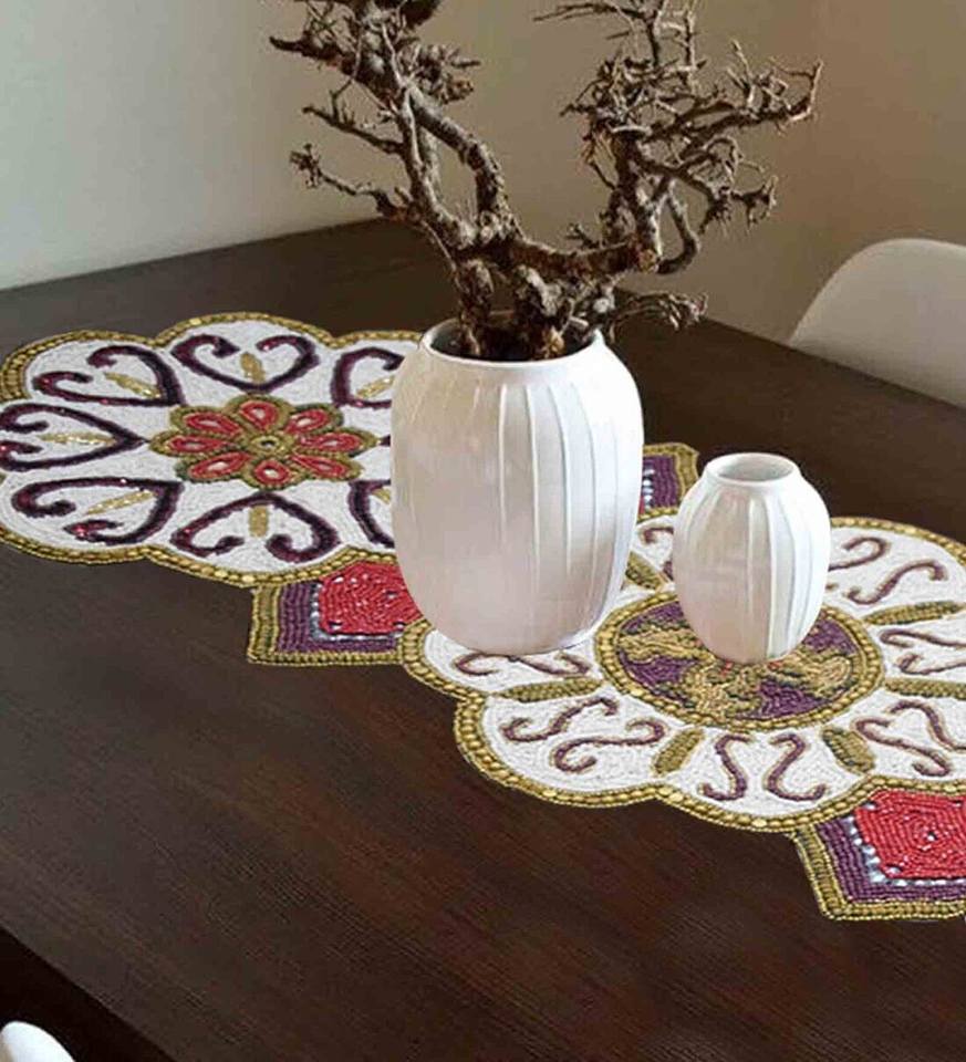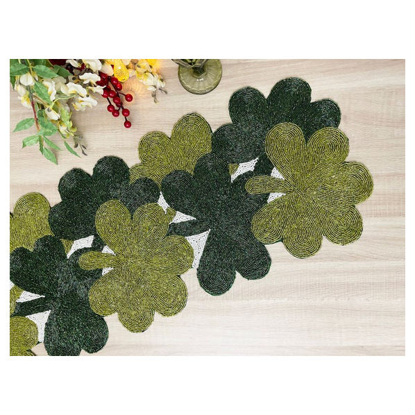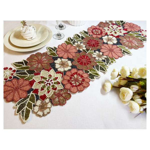 Modern Handmade Beaded Runners Placemats Embroidered Design Eco-friendly Reusable Customizable Polyester Fabric Plant Pattern
