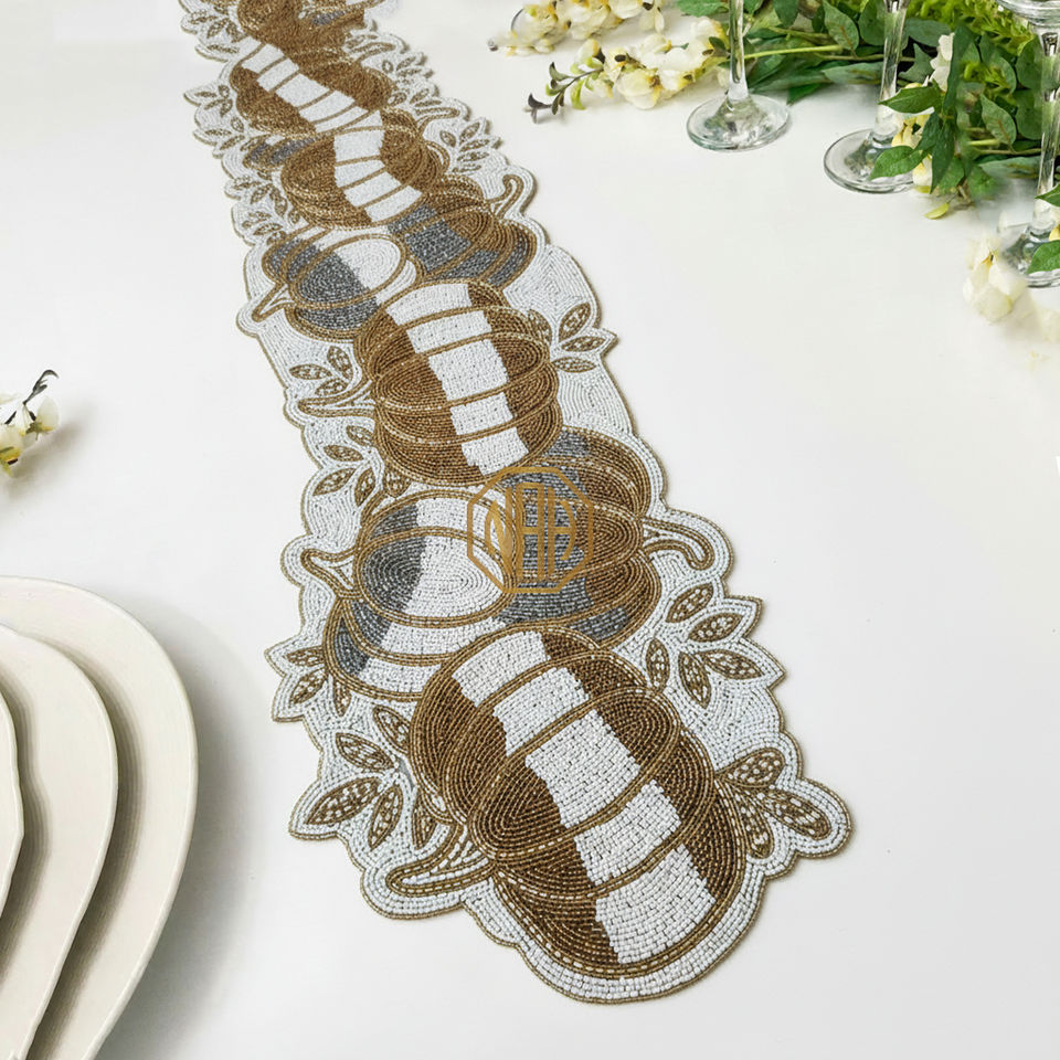 Modern Handmade Beaded Table Runner and Placemat Multicolor Floral Embroidered Design Factory Direct