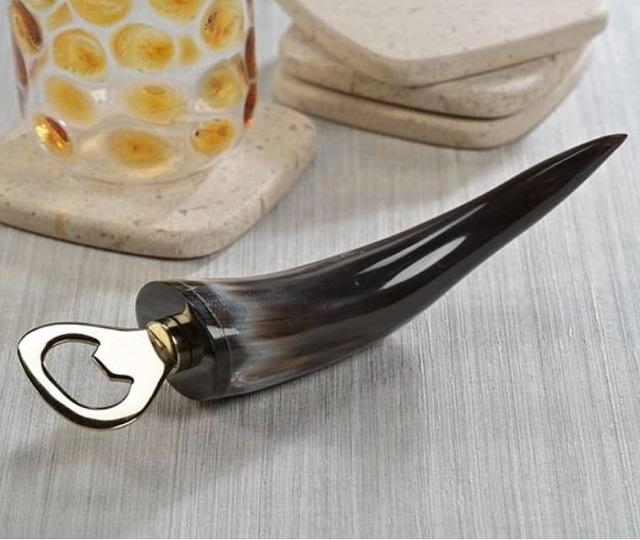 Modern Handmade Eco-Friendly Durable Nickel-Gold Plated Buffalo Horn Handle Polished Bottle Opener for Father's Day Christmas