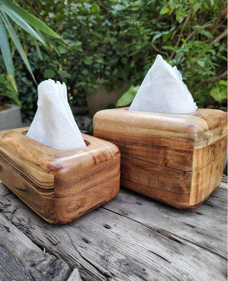 Modern Handmade Eco-Friendly Wooden Tissue Box Holder Natural Finish for Parties Wedding Diwali Gifts 6x4x4 Inches AHAD