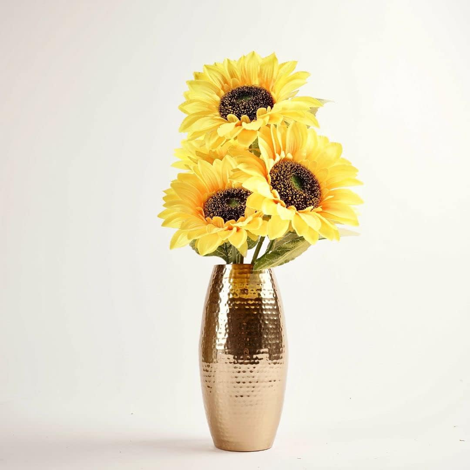 Handcrafted Gold Metal Flower Vase Modern Textured Design Decorative Tabletop Centerpiece for Home Living Room Hotel Decor Use