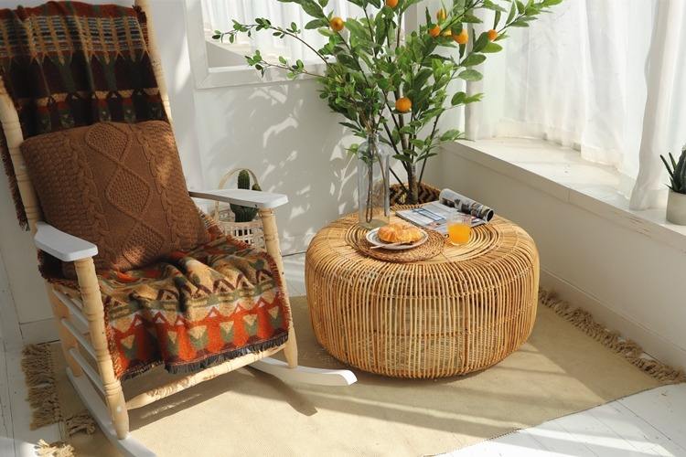 Modern Handmade Rattan Coffee Table Office Hospitality Caned Rattan Wicker Ottoman Living Room Table Home Garden Patio Antique