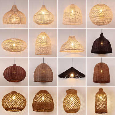 Modern Handmade Rattan Hanging Lamps Wood Suspension Lantern Bamboo Pendant Light with Acrylic Cover Home Office Decor Lighting