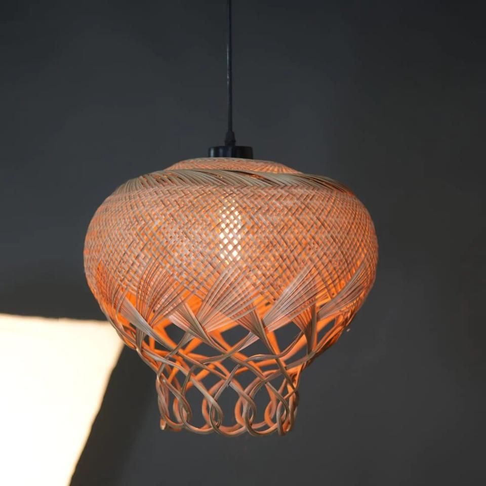 Modern Handmade Wicker Rattan Bamboo Wooden Shade Hanging Ceiling Lamp Retro Lighting for Home Woven Chandelier Pendant Light