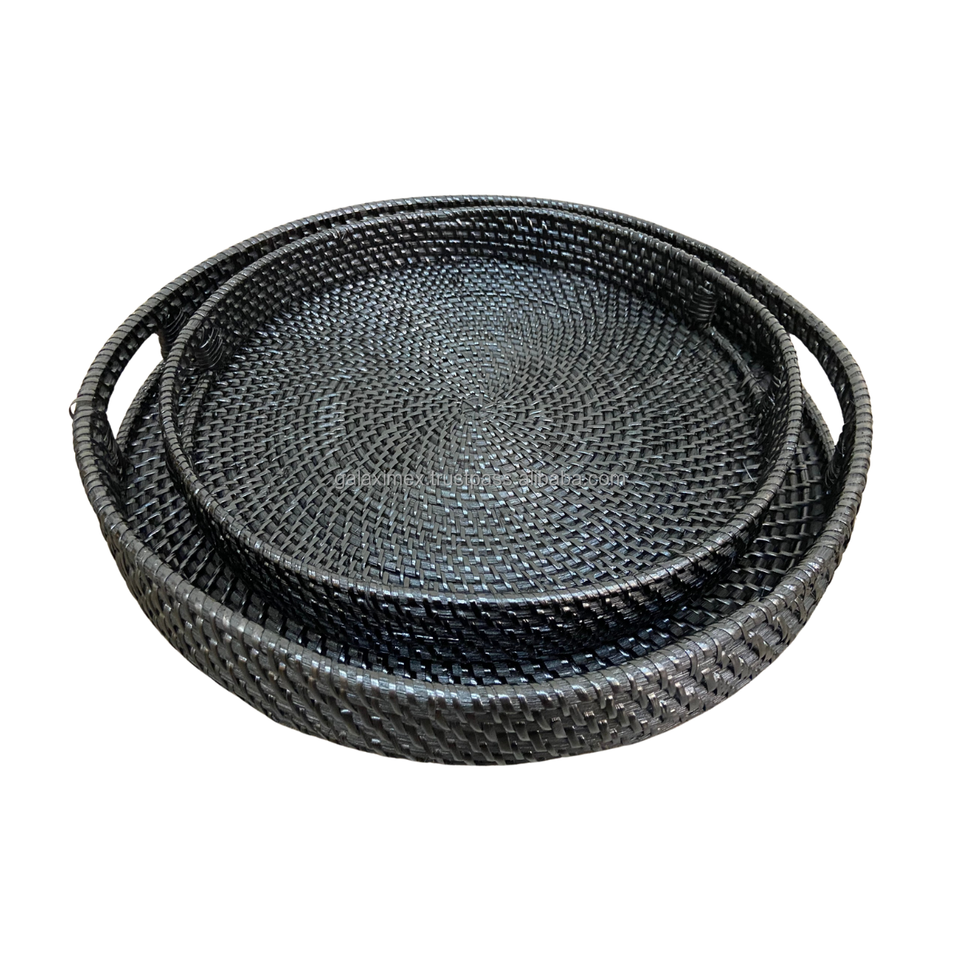 Modern Handwoven Rattan Storage Basket Handle Precision-Made Multifunctional Food Snack Tray Organizing China Origin for Home