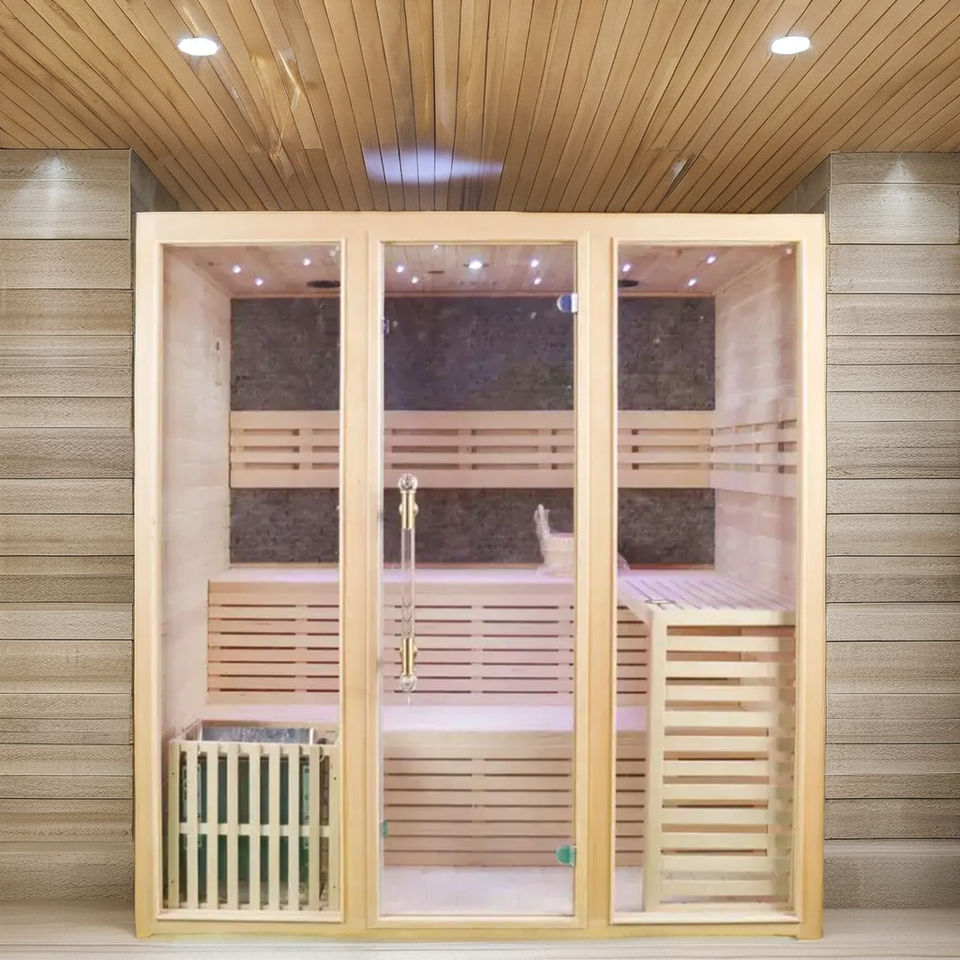 Modern Health Spa Room for 4 People Square Traditional Sauna for Stress Wet Steam Electric Stove Control Panel Apartment/Villa