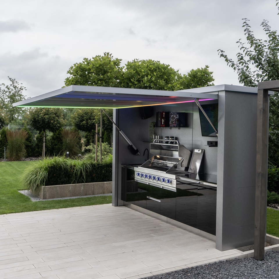 Modern Heavy-Duty All-in-One Outdoor Kitchen 304 Steel Chrome Plated 8-Burner Embedded Grill Featuring Deep Fryer for Poolside