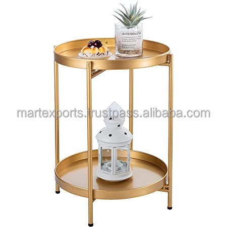 Modern High-End Metal End Table Home Furniture for Living Room Coffee or Bedside Display for Nightstand or Bedroom Decor