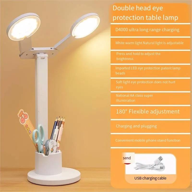 Modern High-End Work Learning LED Desk Lamp Folding Eye Protection Touch Dimming Student Charging Bedroom Dormitory Reading USB