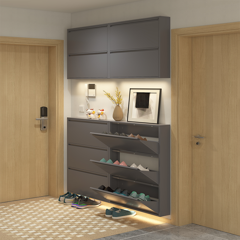 Modern High Quality Shoe Cabinet for Entryway Steel Shoes Rack with Big Storage Space Slim Wall Mounted Shoe Shelves Fits Decor