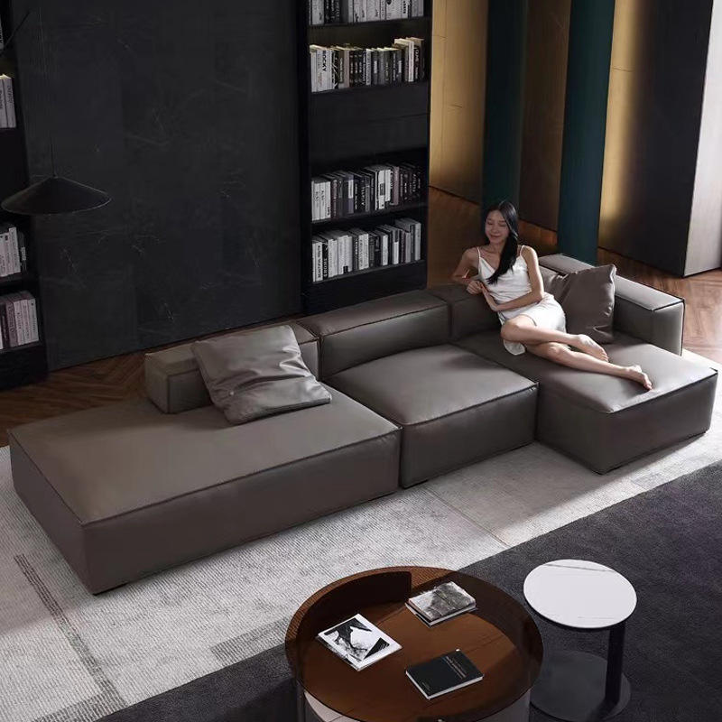 Modern High-end Nordic Furniture Customized Genuine Leather Modular Sectional Lounge Sofa Tan Conac Brown Camel Gray Leather